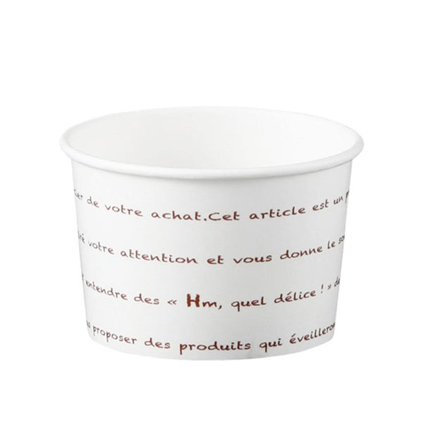 英字柄付きのアイス用ペーパーカップです。内外両面PE(ポリエチレン)加工により、アイスがにじみにくくなっております。ジェラートやフローズンヨーグルト、フルーツを入れるカップとしてもご使用いただけます!